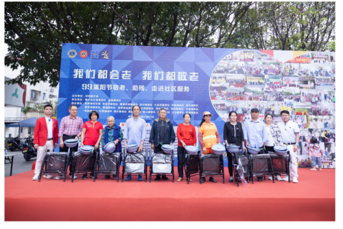 2023年10月21日,在重阳节来临之际,深圳狮子会走进宝安区航城街道九围社区开展《我们都会老 我们都敬老》爱老、助残活动,向200位70岁以上的社区老人、贫困残障人士捐赠钙片、羽绒被子、大米、牛奶、外用膏药、医疗仪器坐便椅、生活用品等物资,本次活动服务经费共15万元。