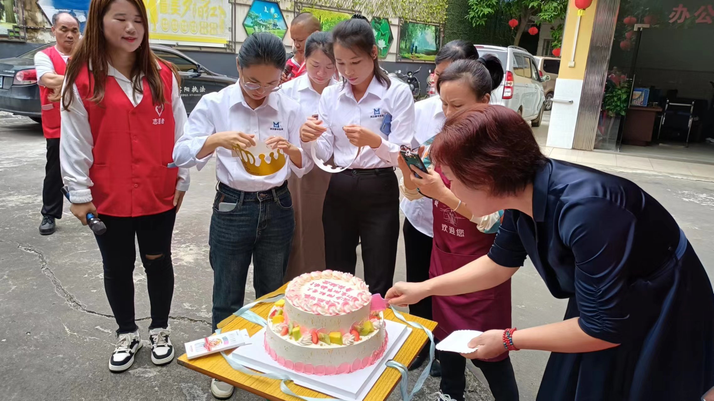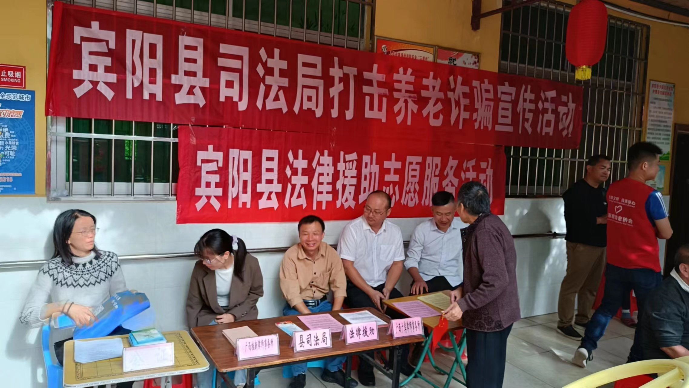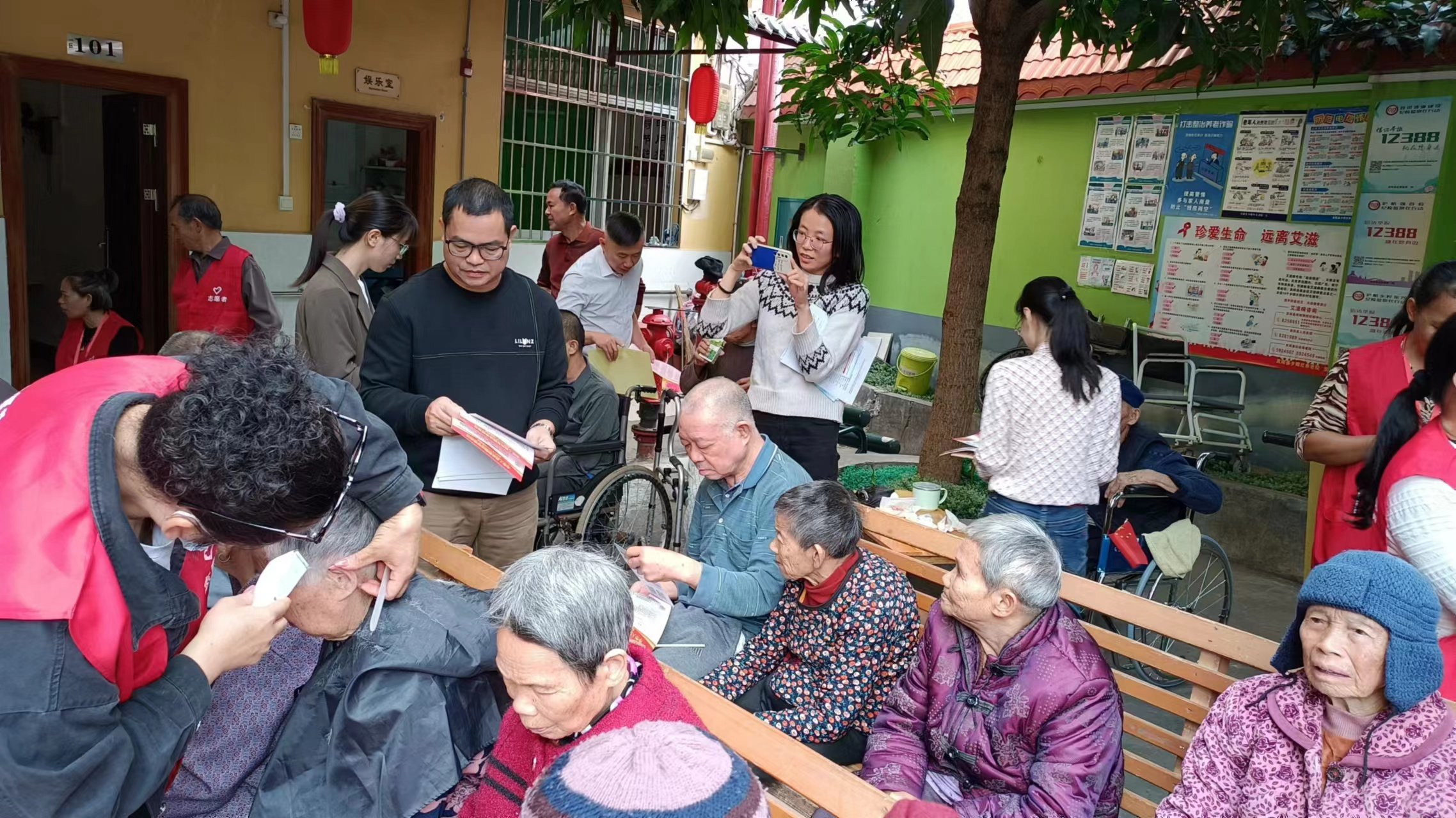 今天早上8点在宾阳县民政局门口集合,早上9点至11点在宾阳县夕阳红养老院开展公益活动关爱高龄老人,给高龄老人理发,剪指甲,量血压,法律咨询,文艺演出。