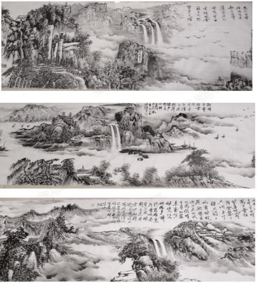 观张振生先生的作品给人的第一感觉非常惊赏,足以让人留下深刻的印象!他的作品气韵生动,笔墨自由,大气奔放。图中或黑或灰里,形象浑然闪动,很有动感,不轻不薄,都恰到好处,很好的表达了山景的丰富。既摆脱了沉静过之而板滞,又避免了狂放之后的乖张,在一张一弛中用实在、敦厚的传统笔墨写意胸中山水气象,作品看似意向强烈,实则温而不火,藏而不露。好的山水画在于画面的画外音,而不是停留在单纯的画卷上,它能让你联想到更多的东西,张振生先生的作品没有附和金钱流行的水墨,而是在用自己的表达方式展现自己的水墨风格,这才是真正,有艺术价值的绘画作品。 张振生先生年近80岁,为中国画的传承奋斗了一生,还创作了巨幅百米长卷作品,极其震撼!