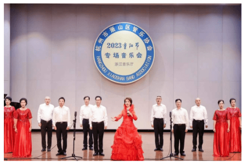 《同一首歌》倾诉了人民对和平、友谊的渴望,表达了人们憧憬幸福未来的思想感情 重阳节的杭城,处处飘逸着淡淡的桂花晚香,沁人心脾。10月22日晚,在浙江音乐厅,由杭州市萧山区管乐协会主办的“2023重阳节专场音乐会”将在此拉开帷幕。本次区管乐公益志愿者团队倾情演出,已是第四次登上浙江最高音乐的殿堂,又一次把精彩的高雅艺术视觉盛宴呈现给杭州的市民朋友们。 岁岁重阳,今又重阳。在这个特殊的日子里,协会的公益志愿者们和杭州的老年朋友欢聚一堂,送出节日的问候。祝愿岁岁年年人未老,年年重阳溢华芳;祝福每一位步入夕阳的老年朋友们,健康长寿,幸福快乐。用音乐传递情感,用视觉感受生命的美好!