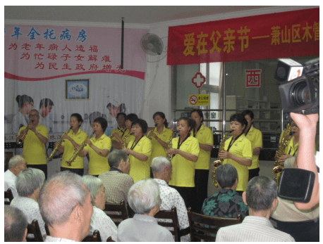 “社会公益服务之星”徐建勇走进康复中心慰问老人 晚会结束后,我们现场随机采访了徐建勇先生: 笔者:徐主席,杭州市萧山区管乐协会成立以来,团队参加社会公益文化志愿活动,你的原动力是什么?如何理解音乐能给百姓带来的精神愉悦。 答:随着百姓的物质生活条件越来越好,而对精神生活的需求也越来越高。音乐是一种跨越语言和文化界限的艺术形式,音乐能治愈,是抚慰心灵的天使,它能够通过美妙的旋律和动人的歌词传递情感和思想,打动人心;音乐是世界上最美的语言,养心音乐是滋养心灵的自然之音,音乐的力量可以凝聚人们的情感,激发内心的共鸣,让人们感受到世界的多样性和美好。让大家参加社会公益志愿者活动,也是在履行我们的社会责任。积极向上的公益活动,能够引领更多市民参与音乐律动,有益身心健康,使参与者的业余生活更加充实、丰富多彩,为和谐社会锦上添花。 笔者:参加社会公益志愿者活动以来,你和你的团队都有哪些收获? 答:作为公益志愿参与者收获颇丰:首先业余生活充实了,身心更加健康;通过参加公益活动,成就别人,也方便自己,送人玫瑰,手留余香;参加公益活动还可以提升自我修养,实现个人价值,让人感受到善心和团结的力量,体验到人生的酸甜苦辣。公益活动中,也可以让我们更加了解社会,共建社会和谐。就团队而言,经常参与、组织这样的活动,可以让市民享受丰富多彩的文化大餐。可以提高团队社会的美誉度,收获宝贵的经验和财富,吸引更多市民爱上音乐,让这个世界绚丽多彩。