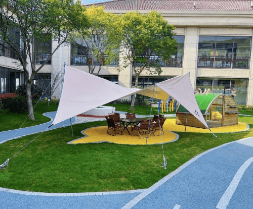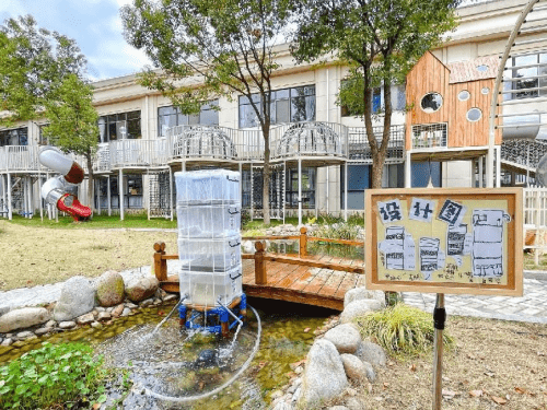 在班级自然学习场域建设中,该园聚焦“一桌、一角、一区”进行室内空间改造,实现室内空间场域的多元化,同时拓展户外自然学习场域,投入约150万元完成了户外小园子、屋顶农场等场域的拓展,并在幼儿园中庭增设骑行区、表演区、音乐区、探索区等区域,满足幼儿不同领域学习发展需求。