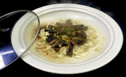 图为百合蒸酱鸭 除了清蒸佐菜,江浙一带的人们也喜欢用酱鸭过粥,做菜泡饭。将一餐吃不完的酱鸭,加上冬天里打了霜的矮脚青菜,和冷饭一起汤里滚一滚,鲜味完全释放在汤中,待锅里咕嘟嘟冒出香气,酱鸭肉香与酱香跟米香、菜蔬的香气融合到了一起,是一种踏实而满足的味道。天冷的时节来上一碗,暖心暖胃,吃完整个人都元气满满,幸福感从心底开始攀升!
