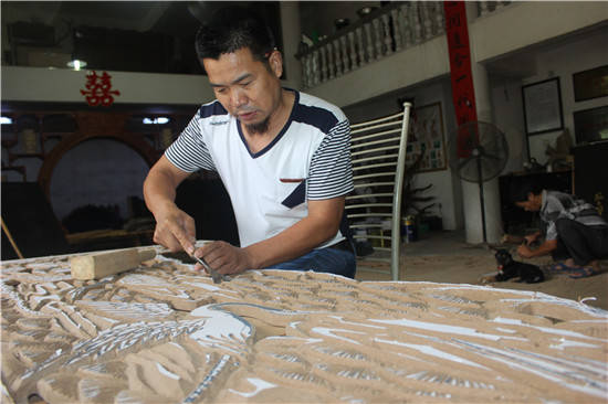 俗话说得好,往往在一个成功男人的背后,总是站着一位默默付出的女性。王舍安的人生道路也不例外,在我看来,他的人生的真正转折点应该就是从他认识一个女人开始的。这个女人后来成为了他的妻子,成为了他此生人生道路上最为亲密的战友和最为得力的助手。她就是我们主人公王舍安的妻子俞若平。 90年代初期,改革开放的步伐开始加速。武义这个小县城也迎来了房地产开发的第一波热潮。下溪滩、江山新村等区域率先矗立起了一排排新建的楼房。也就是在这样的背景之下,王舍安带着两位徒弟,在县城开始了他们挨家挨户上门做家具的打工生涯。 有一次,其中有一个徒弟开玩笑地说:“师傅,听人说武义皮鞋厂里面年轻女工比较多,我们是不是想办法去皮鞋厂找找对象看。”谁知道这一句玩笑话却真的改变了王舍安的命运。 王舍安通过皮鞋厂的一个熟人买到了皮鞋厂食堂的饭菜票,三个年轻人就带着梦想去皮鞋厂食堂吃饭。真的是无巧不成书啊!王舍安一眼就认出了一个姑娘,他说: “你是俞源人,你什么时候来这个厂上班的啊?” “我来这里上班已经有几个月了”姑娘回答。 就这样一问一答,他们之间的关系马上就拉近了许多,很快他们就成为了老熟人。 此后,王舍安会把自己带来的菜给姑娘吃,姑娘也一样,会把自己买来的好菜给王舍安吃。 就这样一来一回,他们彼此之间的距离越来越近,很快他们就成为了恋人。 王舍安回忆说,我们两个相遇相识完全是一种偶然。但是人生大多如此,一个偶然的机会往往就产生了必然的结果,也许这就是所谓的缘分吧。 就这样,1990年的夏天,他们成为了夫妻。王舍安说,结婚以后,家里大大小小的事情都是妻子负责,两个女儿带大我基本上没有什么用心思。 俞若平不仅仅是一个贤妻良母,在完成家务事的同时,她在事业上给了王舍安极大的支持。如前所述,寿仙谷老寿星工程中,俞若平带着两岁的孩子,与王舍安吃住都在工地,再苦再累毫无怨言,值到工程顺利完成。 1990年代末,他们手里已经积累了6000元的现金。夫妻俩开始筹划未来的归巢。因为此前,他们在县城还没有一个属于自己的稳定栖息地,他们往往以工地为家,经常住在简易的工棚里。 此时,他们了解到横街有两间店面出售,价格是25000元,而他们手里满打满算只有6000元左右的积蓄。王舍安就有了想购买店面的想法,妻子非常欣赏丈夫这种大胆敢为的行为,她完全支持丈夫的大胆决策。同时,她全力配合丈夫向亲戚朋友借钱筹款。因为他们多年积累的优质人脉和做生意上良好的声誉,居然在短时间内筹集到了这样一笔资金。于是,他们终于在县城的中心地段,有了一个属于自己的家。 购买店面之后,为了能够赚到更多的钱用以还债,俞若平学会了理发。据王舍安回忆,从此以后,他们的小日子开始慢慢地稳定起来。妻子理发店的收入也完全可以负担家里的日常基本开支,而王舍安工程的收入则为他进一步扩大再生产提供了强有力的保障。 在我的采访中,俞若平对于以往经历的描述精炼而准确,简单而不乏精辟。从中可以窥见其处事判断的担当和周密。她确确实实成为王舍安此生事业成功所不可或缺的人生伴侣和坚强后盾。 六、一个有抱负和使命感的艺术传承人 从前面几个方面的叙述,我们大致可以窥探到王舍安人生轨迹。笔者认为王舍安的人生是历经磨难的,是充满挑战的,也是卓有成效的。 这些年来,从绘画、泥塑、根雕,到建造亭台楼阁、假山庭院和现代城市雕塑,王舍安不仅在武义县城有了名声,金华各县、市及丽水,甚至河南、广东等地的一些寺庙、祠堂开建或修复,也都会慕名邀请他去设计一些艺术作品,承接一些工艺美术工程项目。 王舍安还先后完成了武义藉著名经济学家千家驹、中国现代史上左翼文化运动先驱湖畔诗人潘漠华和原中共浙江省委书记徐英烈士等10多位地方名人的艺术雕塑。 这些年来,王舍安还先后创作了武义温泉度假区的温泉茶浴壶、牛头山的老子青牛、唐代道教领袖叶法善天师群像、天然居的壁画、俞源村里的古村落模型、大红岩北入口的大型塑石假山、大庙岭“食养”大型浮雕和广西桂林金钟山温泉景观雕塑等等。这些呈现在展览馆里以及矗立在广袤大地上的大型作品,都获得了各界人士的一致好评。 随着时间的推移,王舍安的成就也越来越令人刮目相看,各种奖项和荣誉接踵而至。当然,他头上的光环也越来越闪亮,头衔也越来越众多。现在,仅仅列举其中一部分: 浙江省非遗“泥水画”代表性传承人高级工艺美术师、中国高级根艺师、中华传统手工艺大师、当代杰出艺术家、浙江省优秀民间文艺人才、浙江省百名文艺带头人、浙江省工艺美术优秀人才、金华市优秀非遗传人、金华市八婺工匠称号、武义县第六、七届拔尖人才、武义县人民代表等等。 与此同时,他还能够不断刻苦学习文化知识,不断提升自己的文化内涵和工艺技能。2023年1月他获得了北京语言大学本科毕业,2022年8月和9月,荣获国家一级工艺美术雕刻师和工艺美术品设计师(这是中国轻工联合会颁发的技师证)资格证书。 尤其令人称道的是,他最近又获得了“浙江省工艺美术大师”荣誉称号,他和他的工作室一起在由八个省部门联合参与评审的活动中荣获“浙江省乡村工匠名师和乡村工匠名师工作室”荣誉称号。 如今,王舍安真真实实地成为了