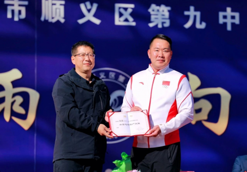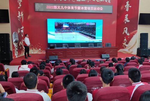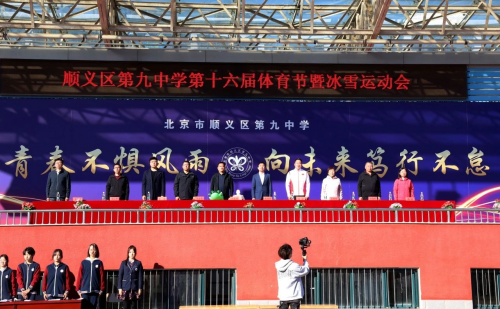 日前,一场别开生面的趣味+冰雪项目运动会在北京市顺义区第九中学举行,全校师生共同参与和学习冬奥知识、体验冰雪运动的魅力。 开幕式上同学们进行了颇具创新、独具特色的入场展演,表现了新时代青少年的朝气和活力。世界花样滑冰冠军、北京体育大学教师张昊在活动现场受聘担任学校的冰雪运动推广大使,他致辞希望同学们不仅要体验冰雪运动带来的快乐,还能把不屈不挠、谦逊冷静的冰雪精神融入到紧张的学习生活中。据了解此次运动会既设有传统运动项目,还开展了雪垒和旱地冰壶竞赛。在学校报告厅的“冬奥大讲堂”里,两百多名同学聆听冬奥励志故事、零距离接触冬奥奖牌后十分激动,纷纷立志勤奋努力为祖国增光添彩。 校长王金龙表示,此次运动会是学校积极落实“双减”政策,深化“五育并举”,培养德智体美劳全面发展的社会主义建设者和接班人的重要举措,他勉励师生发扬体育赛场上顽强拼搏的精神,享受体育乐趣、拥有健康体魄。区教委副主任张旭东希望同学们以健康心态、健美身姿、健壮身体,充满活力地迎接每一天,为紧张的学习生活增效赋能。区体育局副局长付敬功还专门为体育节运动会鸣枪发令,鼓励同学们在运动拼搏中磨练成长!