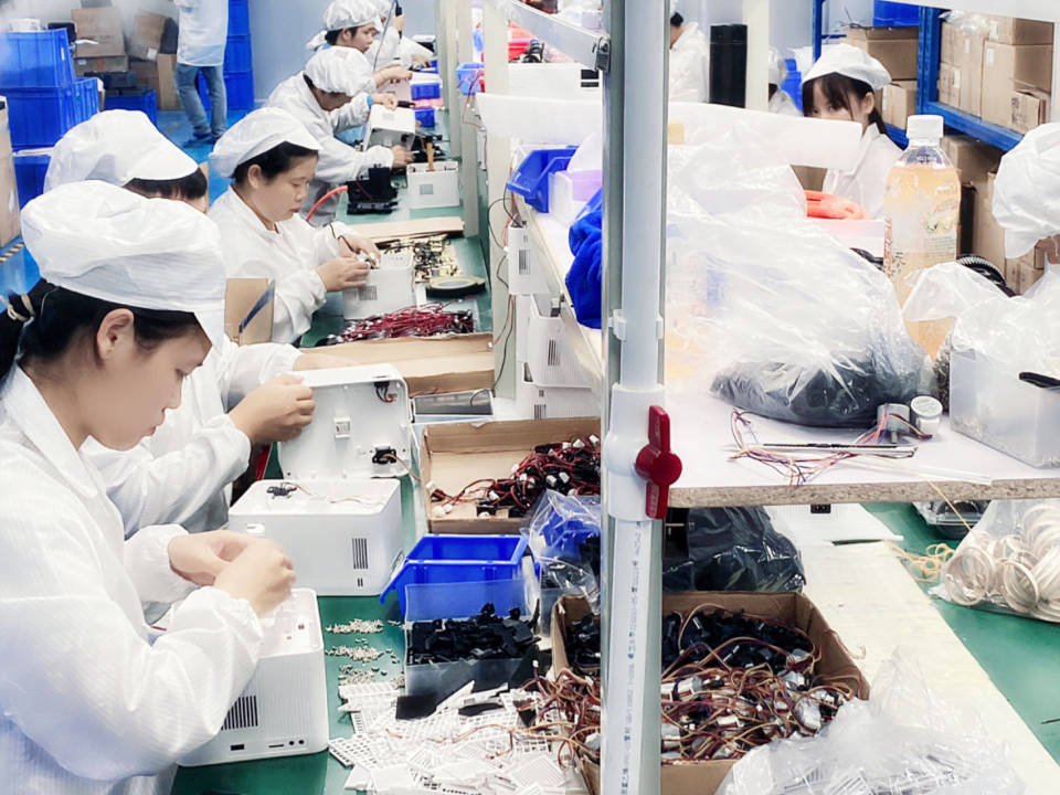 超高清画质 根据市场上调查的大家关于投影仪的要求,还真被我找到了一家集研发、组装、销售为一体的智能投影仪生产制造企业厂家——影大智能科技(深圳)有限公司。 车间工人是我们公司最宝贵的财富,正是你们的默默付出,为公司的稳步发展铺平了道路。