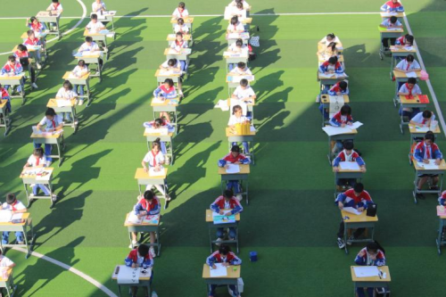 妙笔行云志,少年自书成。参赛学生聚精会神、坐姿端正,有的注重运笔,笔画流畅,字形挺拔;有的字体刚劲有力,整幅作品布局合理美观大方,同学们都聚精会神地书写和作画,专心致志地投入在自己的创作中。