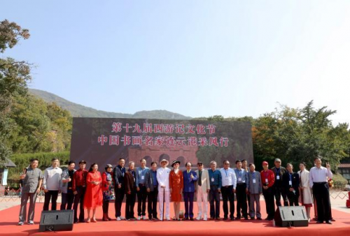 墨舞金秋后,书画家们从花果山山门出发,一路前行,开启一场登高赏秋之旅。登上江苏最高峰,秋日之芳华尽收眼底。漫游水帘洞,伸手触摸洞门前斑斓的彩虹。这趟绚丽的赏秋之旅,为本次文化节增添了亮丽的色彩。
