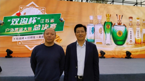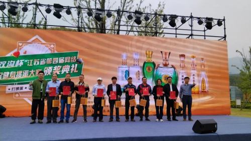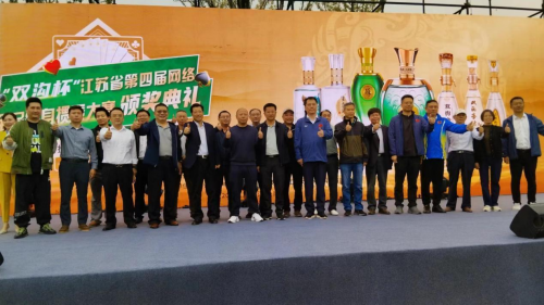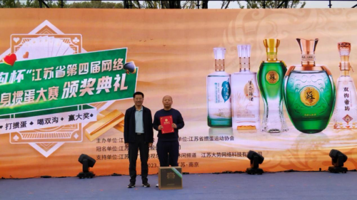 江苏双沟酒业销售有限公司南京事业部总经理熊凤雷、江苏大势网络科技有限公司华东大区总经理冯郁,为获得“双沟杯”江苏省第四届网络全民健身运动会掼蛋大赛鼓励奖的50名运动员代表颁奖 “双沟杯”江苏省第四届网络全民健身运动会掼蛋大赛颁奖仪式结束后,进行户外掼蛋大赛总决赛。