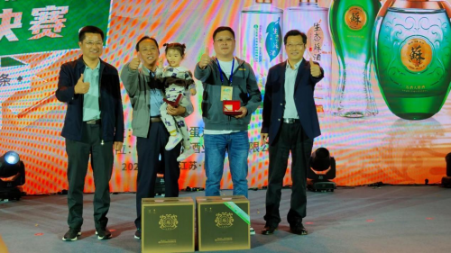 漆冠山会长和洋河股份总裁助理、双沟酒业销售有限公司党总支书记、总经理范晓路为获得“双沟杯”江苏省第四届网络全民健身运动会掼蛋大赛三等奖的运动员颁奖
