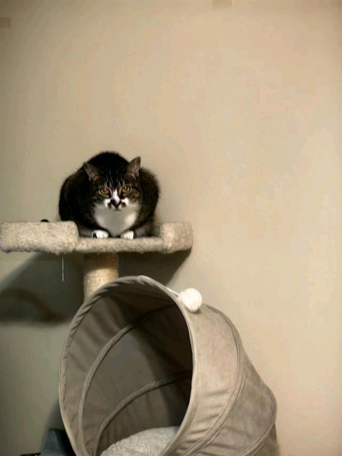 踏入女儿租住的公寓,首先出来迎接的,是女儿养的猫图图。 对于图图,我并不陌生,之前跟女儿视频,它经常会将小脑袋探出来抢镜头,爱屋及乌,我也时常隔着屏幕逗它,对我的声音,想必它也不会感到太陌生,而今相见,它也算是这个屋里的小主人之一,于是连忙喊它,跟它打了个招呼。 然而图图见主人回来,赶紧跑过来,用头亲昵地在它的小主人腿上蹭来蹭去,表达几日不见的想念,对于我这个客人的热情招呼,它只是时而会扭头瞟上几眼,眼神不悲不喜,无爱无恨,表现的云淡风轻。 到达时已经是晚上十一点多钟,由于太累,吃完饭后一躺在床上便睡着了。可是睡到半夜,感觉身边有人动我的胳膊,睁开眼,看见图图正卧在我和女儿中间,瞪着它的铜铃般的圆眼睛认真地望着我,还不时地用它肉乎乎的小手拍拍我的胳膊。先拍一下,看我一会儿,然后再拍一下。见我没有动,干脆将小手压在我的胳膊上,刺出尖利的指甲并逐渐用力,直至我感觉到痛,轻轻动了一下,它才将手移开。见我没有生气的意思,它就又来。我有些好奇,不知它此行何故,是不是在试探,看我会不会伤害它。 在黑暗中,我望着它,冲它微微一笑,觉得这只猫确实有点意思,怪不得女儿宠爱它,便忍不住用手去摸了摸它的头与滑溜溜的身体,然后再握握它的小手,算是握手言和,用肢体语言告诉它,和它的主人一样,我也会一样爱它。 第二天,女儿就开始上班了,她早上出门,下午才回家,这样,后来的日子,除了周末,每天都是图图在家陪着我。 每天早上女儿下楼,我都会站在露台上目送她的车子开出院子。图图亦如是,知道每天那个时候我都会准时拉开露台的玻璃推拉门,它便提前蹲在门口等待,门一打开,它就削尖脑袋迅速地溜了出去,生怕落在我的后头。女儿离开后,我会让它在外面撒会欢,呼吸一下新鲜空气,然后再叫它回来。 图图是只母猫,在女儿的精心养育下有些营养过剩,身材胖的甚至有些臃肿,肚子滚圆,就像怀了孕似的。据女儿讲,它还是一只上了年纪的老猫,女儿从宠物收容所将它领养回来时,它已经做过绝育手术,它原来的主人是位老太太,因为那时它年轻气盛,太过淘气,经常玩离家出走的游戏,老太太担心它走丢后变成流浪猫,所以才将它送进了宠物收容所。