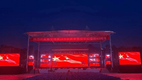 四十诞辰正芳华 职教梦想花绽放 11月5日,都安职教中心“四十诞辰正芳华 职教梦想花绽放”40周年校庆联欢晚会在美丽的都安澄江畔举行。联办高校代表、合作企业代表、校友代表、离退休教师代表及全校师生等近6000人亲临晚会现场,共同祝贺都安职教中心四十华诞,一同见证都安职教中心的辉煌成就。晚会共分为“瑶山有梦创大业”“初心不忘职教欢”“四十芳华新征程”三个篇章。每个篇章层层递进,再现了都安职教中心40年披荆斩棘,克难攻坚的出征与蜕变。 第一篇章“瑶山有梦创大业”在学校李海胜老师改编的《职教欢迎您》大合唱中拉开序幕。《职教欢迎您》唱出了职教人及职教学子的自豪感和使命感,体现了职教中心的初心与担当!学校师生创作的诗朗诵《使命》展现了都安职教中心40年来风雨无阻,历经磨难求发展、自强不息创业绩的奋斗足迹。音诗画《大爱无缰》则歌颂了跨越数千里的山海情谊来到都安支教的支教团队,感谢他们为学校的高质量发展提供了坚实保障。