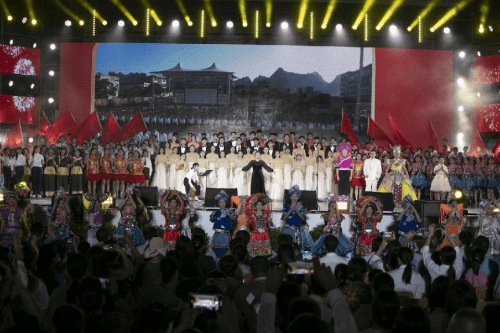 (扎西多吉的倾情演绎) 晚会在合唱《我爱你,中国》的深情演绎中落下帷幕。晚会活动还通过央视新闻移动网、新华社现场云、中国网+、中国网上电视台、广西视听、百度、优酷、腾讯视频、新浪微博等20多个媒体平台进行线上同步直播,据统计,浏览播放量达1050.27万多人次,让身处世界各地的校友和关心职教中心的朋友共同欣赏到代表着职教中心40年巨变的文化盛宴,共同见证到了这一历史性的精彩时刻。