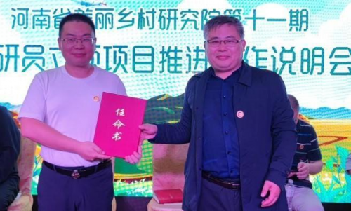 牛华朝院长为张永举同志颁发河乡院院康养旅游研究所所长任命书。