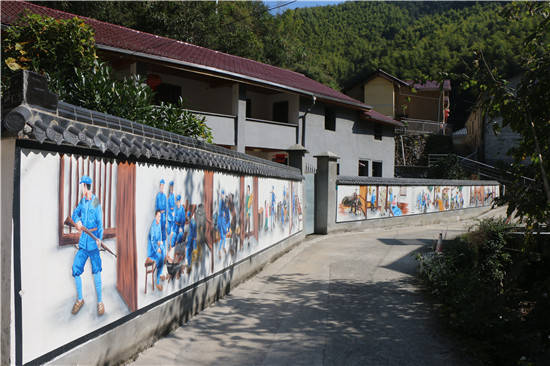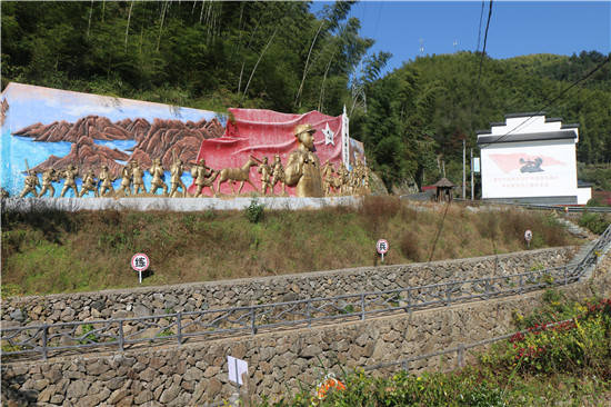 一到村口,首先印入眼帘的是出自乡土艺术家王舍安之手的一座突出开国大将粟裕的金黄色大型红军群雕。走进村里左侧一幢白墙黑瓦的三层建筑是中国工农红军挺进师中共宣遂汤工委纪念馆。馆内陈列着众多的图片、画像、文字、实物等各种资料,生动立体地展示了“中共宣遂汤工委”的成立、抗战中的人、物以及桩桩件件英雄事迹,复原了那战火纷飞的岁月。