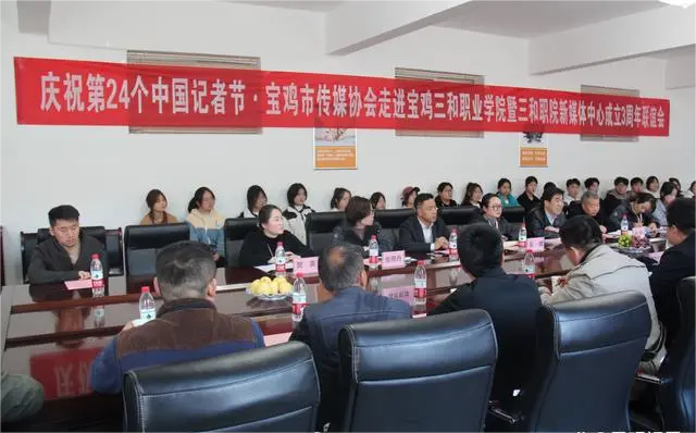 11月8日,庆祝第24个中国记者节,宝鸡传媒协会走进宝鸡三和职业学院暨三和职院新媒体中心成立3周年联谊会圆满举行。