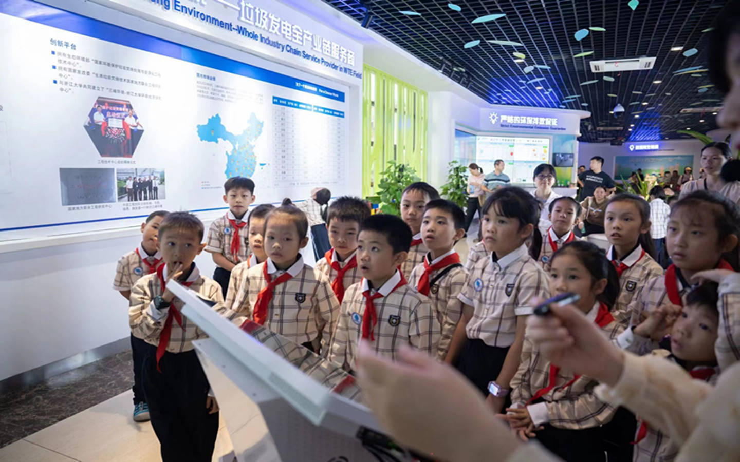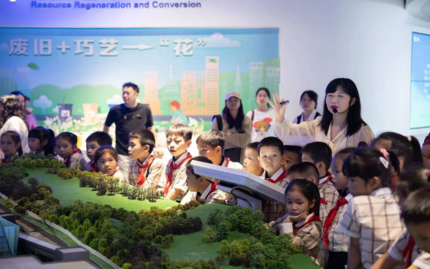 在参观过程中,同学们透过隔离玻璃,可以看到加工间的生活垃圾接收大厅、布袋除尘器、旋转喷雾塔、中控室等工作场景。他们还可以亲自体验现代化的环保发电厂,参与虚拟现实的场景互动,了解垃圾发电的神奇工艺流程,触摸垃圾加工后的再生资源。 在讲解员的趣味问答环节,同学们纷纷举手回答问题,分享自己的收获和想法。有的同学表示,“垃圾分类让我明白了物尽其用的重要性”;还有的同学说,“爱护环境、限塑低碳”的理念已经深深地印在了自己的心里。