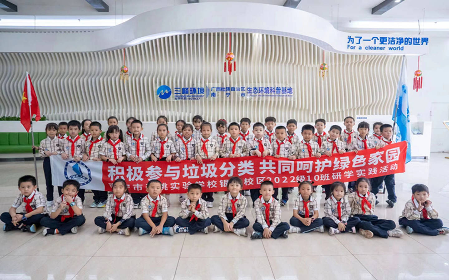 11月4日,南宁市天桃实验学校银杉校区的一部分学生和家长参与了一次特别的研学实践活动——走进南宁市三峰能源有限公司生态环境科普基地,开展了一次“积极参与垃圾分类,共同呵护绿色家园”的研学活动。