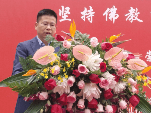 余姚佛教协会会长究源法师、余姚市佛教协会常务理事支山禅寺住持安强法师、居士代表宁波杰的进出口有限公司董事长欧阳军、浙江佛学院(总部)常务副院长持定法师、余姚市委统战部部务会议成员民宗局副局长黄伯忠、宁波市民宗局党组副书记副局长周悦德分别做了致贺词。