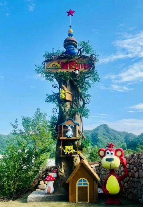 洛阳市栾川县砚台童话小镇主题雕塑 该项目规划两条环线,其中主环线长2.83公里,次环线长1.21公里,建设童话主题景观节点13个,景观休闲平台12个,文化节点9个.包含西游记、大头儿子和小头爸爸、白雪公主、熊出没、猫和老鼠、葫芦娃等耳熟能详,儿童喜欢的童话题材,引导教育儿童学习古典文化,培养团结、友爱、勇毅、果敢的精神。 项目建设就地取材,运用鹅卵石、茅草、废弃木头等本地资源材料,进行铺河、围院、填空,利用千年古树增色,尽显乡土乡韵。同时,充分利用“花”的元素,建设10余亩月季花海一个,在环线及百姓门前房后栽种凌霄花2000余株,建成童话世界,花的海洋。 此次童话小镇的项目方案落地,依然延续他主题突出的实战案例,即丰富了栾川全域旅游的内容,也将成为新晋乡村旅游网红打卡地。