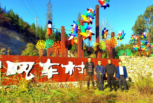 省院领导和洛阳分院胡太明院长在山湾风车村标志前合影 在栾川的沟岔间,分布着大大小小无数个村落,偏远闭塞使很多深山里的村庄平穷落后,山湾村便是其中一个。受政府邀请2019年回国在栾川县庙子镇创意设计的一个休闲农业精准扶贫项目。因为胡太明院长常年德国生活工作的关系,常去欧洲国家走访研学,曾经在菏兰Zaanse Schans小住,记忆深刻!在对山湾村的地理地貌和当地文化考察后了解到,文化植入缺乏历史背景和理论依据。但是山湾村的地貌和荷兰风车村很像,在经过缜密思考和请示相关领导后,确定以“山湾风车村”为项目主题设计定位,形成了符合传统风格兼顾网红打卡特色的中国版“山湾风车村”。以“风车”为元素,打造儿童游乐场、美食广场、农耕研学等特色项目。结合自然资源和地区文化,合理布局产业项目,提炼个性鲜明IP,明确市场定位,用特色IP统领环境建设、景观节点、旅游产品、业态打造和市场营销。使本无特色产业的村落,实现乡村差异化发展。山湾村也以“风车小镇”的新形象,吸引周边游客纷至沓来,打造成了栾川乡村旅游新地标。