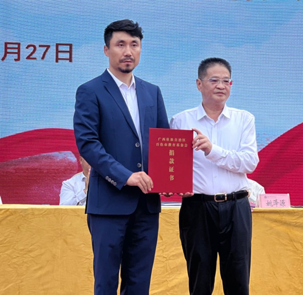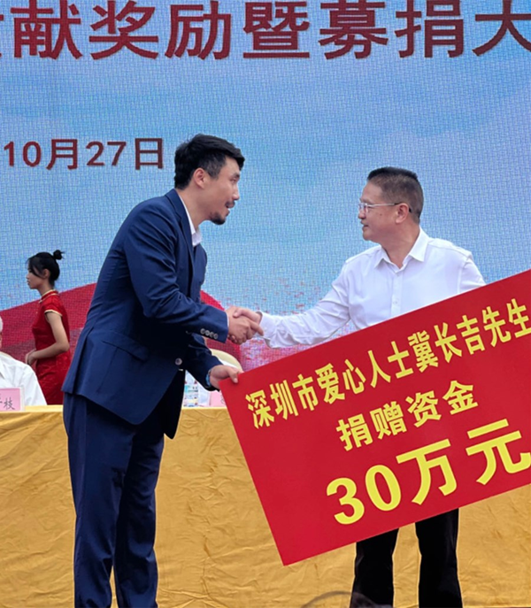 (陶凯龙)2021年10月27日,一场特殊的募捐大会,在广西百色祈福高中隆重举行。其中,深圳爱心人士冀长吉先生为百色“文秀班” 一次性捐款30万元,该资金将用于创办 “文秀班”,资助困难学生完成学业。会上,百色市教育基金会向冀长吉先生颁发“教育公益爱心人士”荣誉称号!