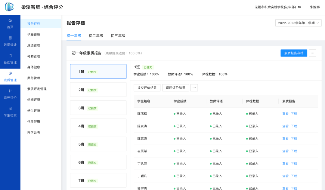 数字化评价系统 优化数字化评价系统聚集学生发展五育融合,学校不断创新综合素质评价体系,智慧评价过程数字化分析呈现,贯穿学习生涯始终。“绿色评价系统”让教师、家长、学生参与学习、生活、德育、社会实践等全方位教育评价过程,多方协同有效提供多元、精准、全面的数据维度,为学校提供数据链和工具链的支持。 近年学校新教师数量急剧攀升,教师数字化发展平台聚集能力素质,“师资大数据”可视化引领,数字育师报告更精准,推动教师队伍精准化梯度培养。 06 善策·人工智能驱动发展 基于语音识别与测评技术,实现英语听说、艺术素养测评考试人机互动。利用物联网和大数据分析,准确采集每个学生心率变化、运动强度,实现学生规模化智慧测试,体测数据后台数据准确有效。通过绿萝心理云平台,成功干预危机5件,人工智能测评在学校应用日益广泛。 良好的智慧体系基础,使学校从“经验驱动式”的教育决策转向“数据驱动式”的科学决策,数据赋能优化分析,引领学校走向高质量发展。 07 创新·科创教育先行先试 学校多次承办省、市、区创客活动,共有1200余名学生在各级各类比赛中获奖,其中61人获省级一等奖。学校成功申报了江苏省基础教育前瞻性教学改革实验项目,教师参与《面向创客普及教育的区域信息技术课程重构研究》成功结题,做到了规划引领、项目驱动、科研导航。近年师生数字素养不断提升,学校获评无锡市青少年科技创新教育示范学校、无锡市素质教育实验基地、青少年人工智能核心素养测评共建示范学校、区创新教育摇篮奖、区青少年创客教育基地学校。
