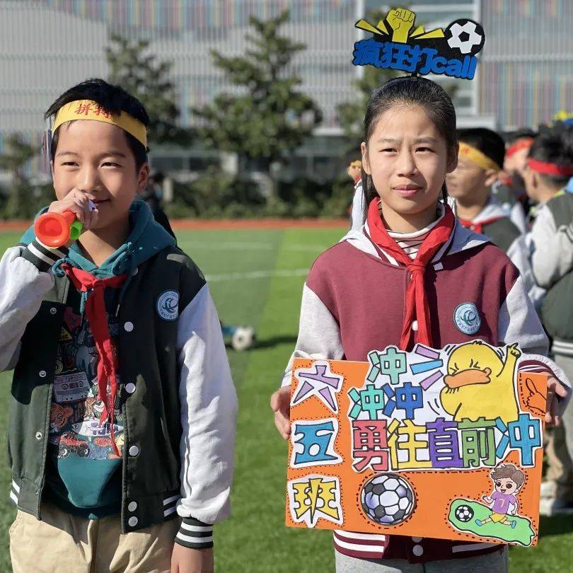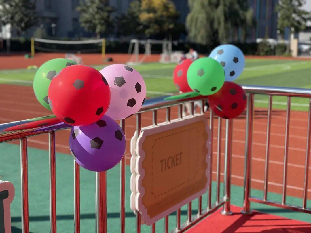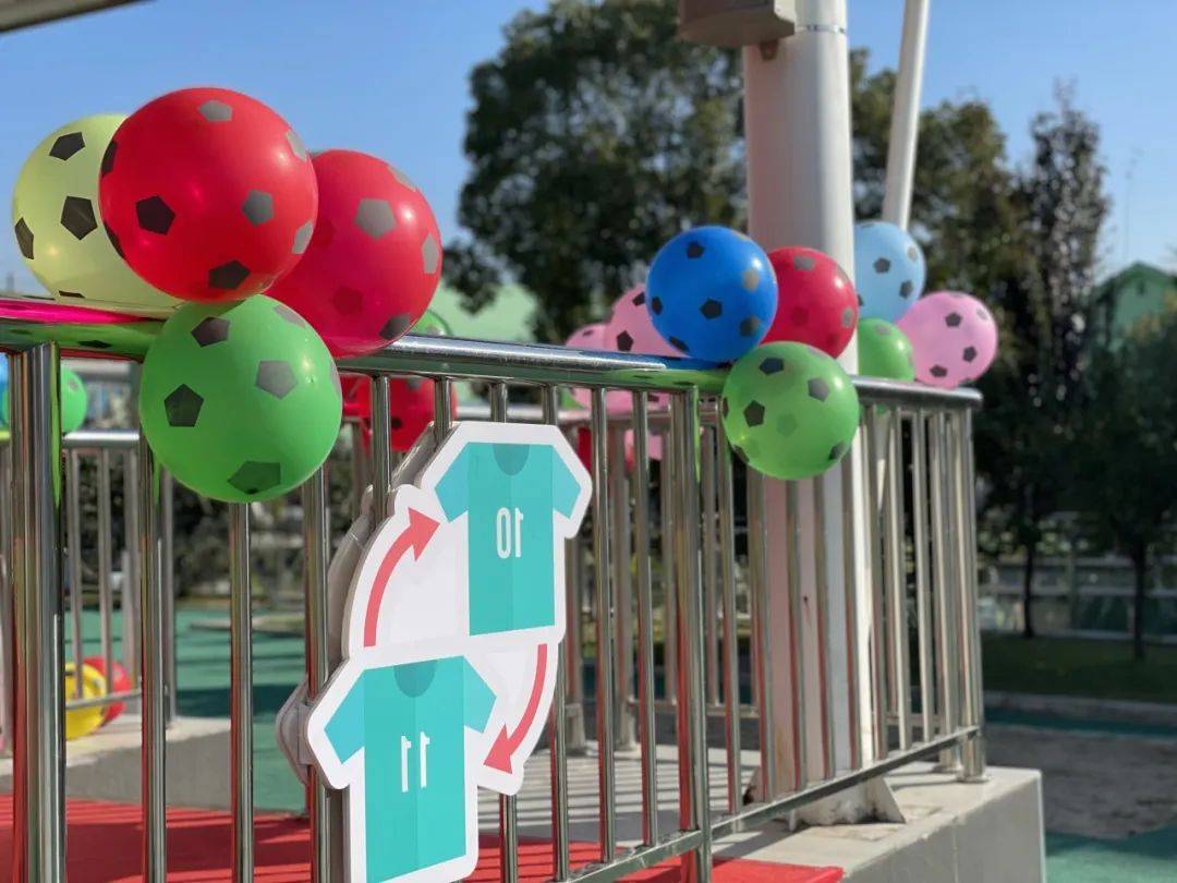 今天的校园,足球味儿特别浓! “足球”跑到了栏杆上, “足球”躲到了展板里, “足球”溜进了海报中, “足球”还在旗帜上随风飘扬。