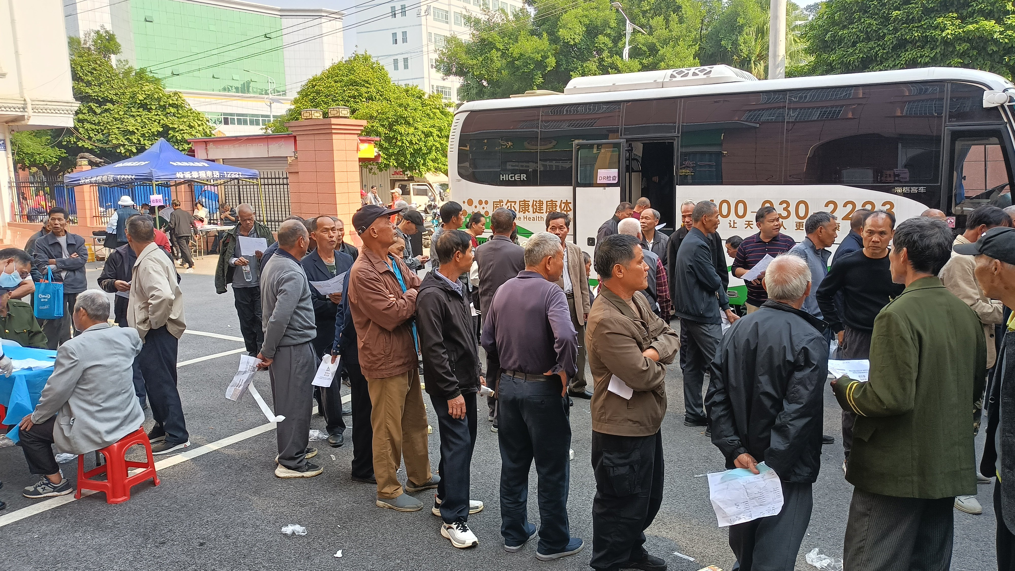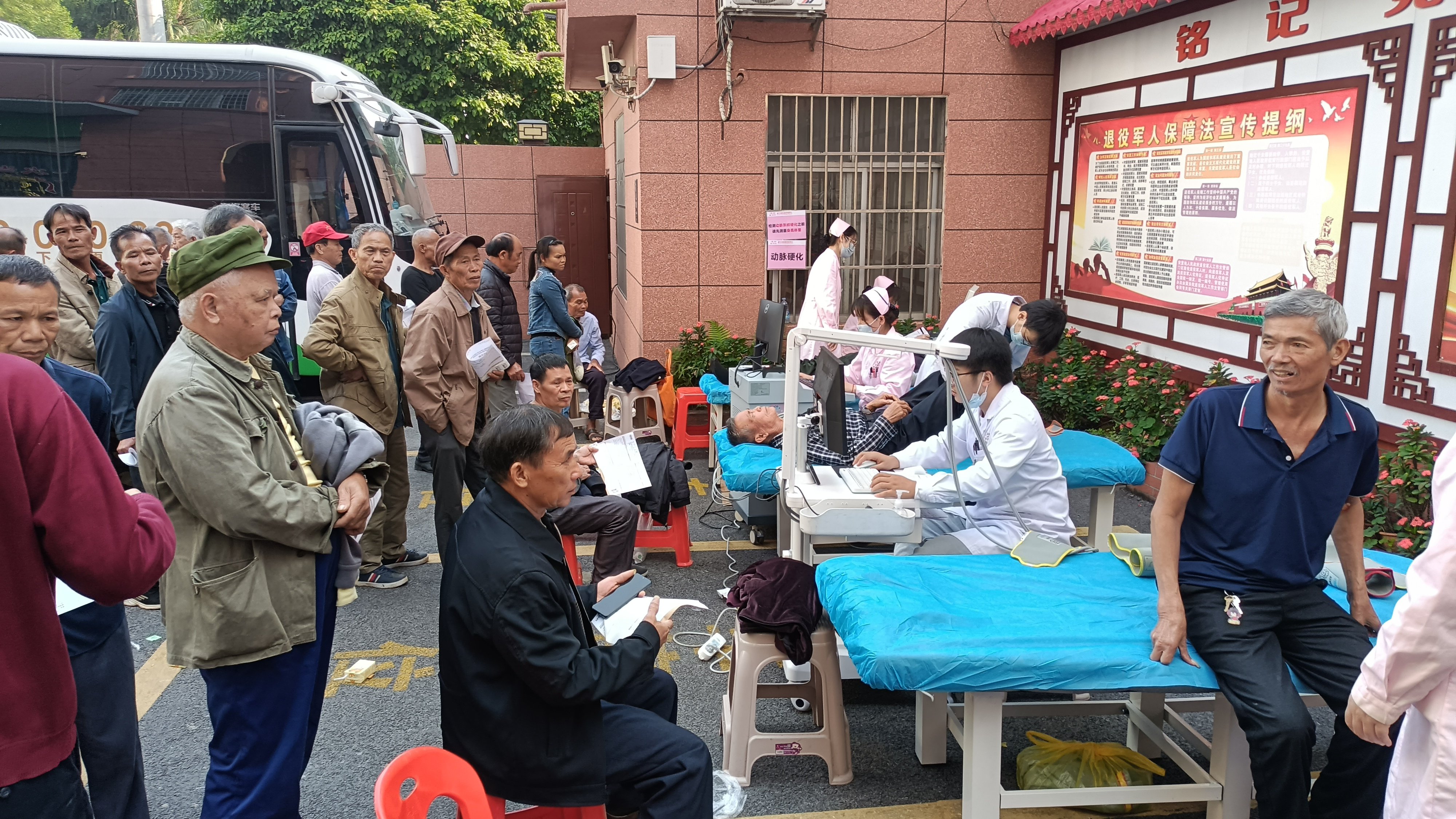 上午9点在宾阳县退役军人事局,由威尔健康体检中心为宾阳县所有退役老兵,抗战老兵,越战老兵,抗美援朝老兵,高龄老人做体检,体检项目有:量血压,测血糖,测血脂,测尿酸,做心电图检测,量体重,量身高,测视力。
