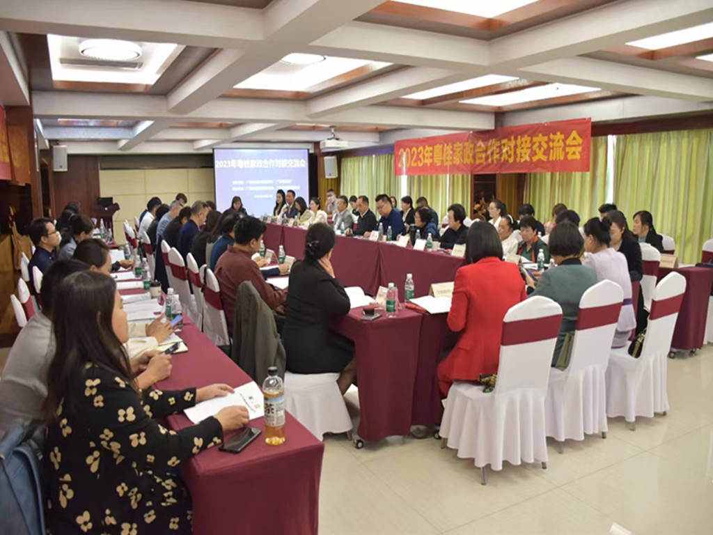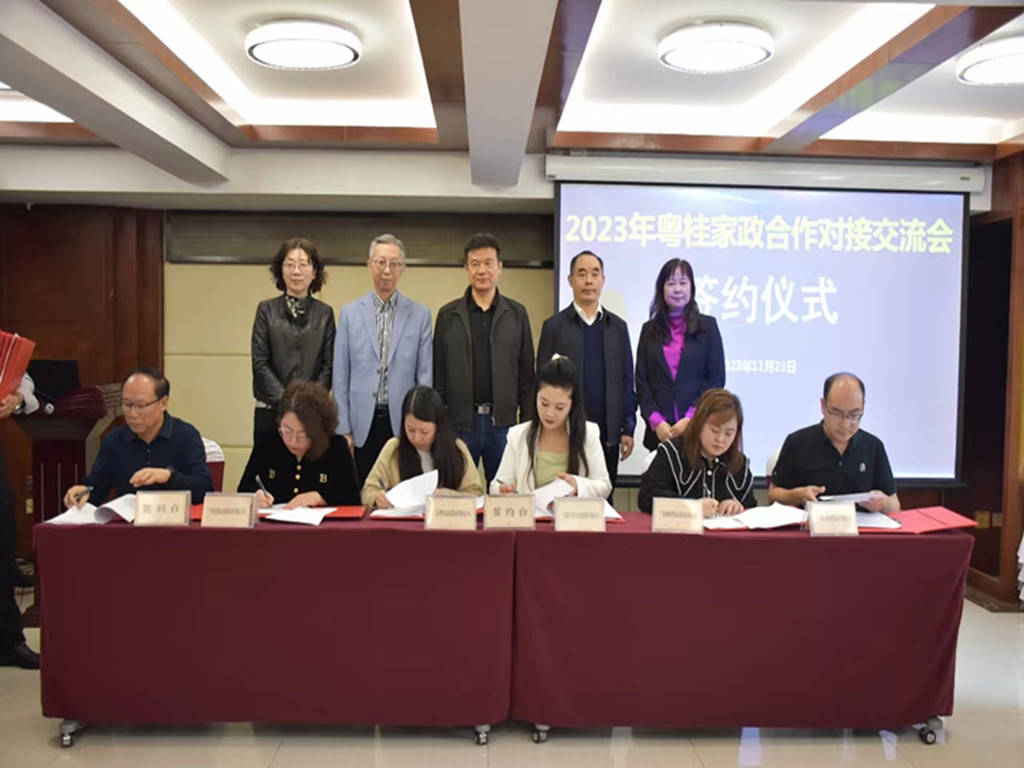 为推进实施家政兴农行动,促进家政服务业提质扩容,助推广西家政服务业发展,助力乡村振兴,按照广东、广西两省区商务厅签订的《粤桂家政协作对接合作协议》要求,2023年11月23日,广西商务厅与广东商务厅在广州共同举办粤桂家政合作对接会,来自粤桂两地优秀家政企业代表等100多人参加本次对接会。