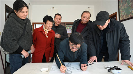 打电话联系,来到村里的一座石拱桥前,刚刚种完菜的方万祥正挑着一对空畚箕,背着一把锄头悠闲地走来。清澈的溪水、高大的古树、和煦的阳光与人组成了一幅乡村和美的山水画。 在方万祥有家里,墙壁上挂满人各色人物、山水、蔬菜、动物的画像,都栩栩如生。 今年72的方万祥土生土长在寿仙村,生活在空气清新、毫无工业污染的环境中。具有与众不同绘画天赋他,从小把家乡的山山水水、奇峰怪石的长势作为习画的最好老师,向大自然“请教”如何作画。上学时他听得最认真的便是美术课,孙悟空、猪八戒、武松到现实中的雷锋等他都画过。他认为在创作的过程中,将自己的想法融入笔触,画作便带着个人的特色,是画者另一种形式的存在。