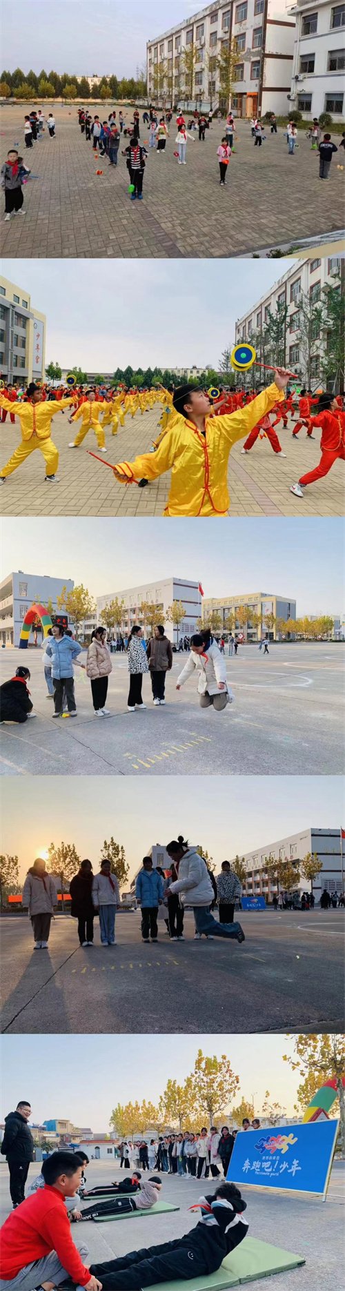 在赛场上,发令枪响起,同学们像离弦的箭一般冲了出去。迎着寒风,迈开步伐,踏着朝阳,冲向终点。是激情,是活力,是孩子们一往无前的运动精神!“刷,刷,刷”绳子在孩子们的手中迅速转动起来。绳舞身跃,那此起彼伏、富有节奏的跳动旋律,是孩子们努力、拼搏的音符,谱写出一曲与时间比赛、向速率挑战的乐章。同学们咬紧牙关,全力以赴!看,每一次躺下,每一次坐起,都是一次努力和进步!看!他们配合默契,相互鼓劲,争取最好的成绩!空竹牵动少年气,韵律心鸣乐满天。学生们抖飞了空竹,也抖出了学校求真务实、持之以恒、和谐发展的师生情怀。