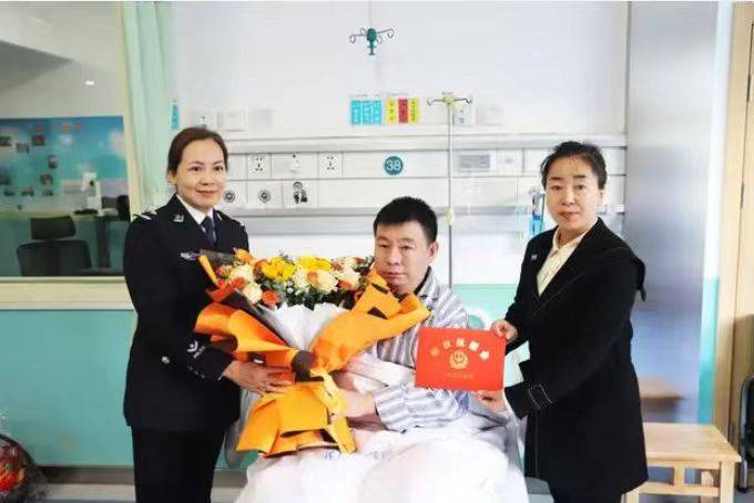 事件发生后,受到广大公安干警和地方群众的一致好评! 11月17日,省公安厅督查总队带着省公安厅党委关怀,对张晋虎进行慰问并发放了抚慰金!这是自《山西省公安机关维护民警执法权威抚慰金发放办法(试行)》出台后,发放的第一笔省级公安机关抚慰金!对张晋虎来说,何其有幸,这不仅是一种荣耀,也是省公安厅的无限关怀!张晋虎表示,愿尽快康复,重返岗位,继续守护人民群众的生命财产,把责任和担当继续扛在肩上,当危险来临的时候,依然会冲在第一线。这就是人民公安,张晋虎在平凡的岗位上,彰显了不平凡的意义和精彩!请为和病痛折磨的张晋虎同志加油,请为我们当代和蔼可亲的公安干警点赞喝彩! |