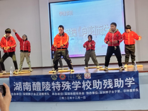 醴陵特殊教育学校校长朱艳青女士表示:首先对远道而来的深圳狮子会正道服务队、深圳醴陵商会等爱心人士们表示热烈的欢迎,她向各位来宾介绍学校建校31年来,已发展成为从学前段到高中段的综合性十五年一贯制寄宿制学校。在上级的支持和各界爱心人士的帮助下,学校办学条件显著提升,近年来,学生节目荣获全国排舞大赛团体特等奖、省云动会二等奖、市科技文化艺体节一等奖,学校获省特教先进单位、市教育系统红旗单位。最后朱校长真诚致谢,深圳狮子会正道服务队、深圳醴陵商会两次来学校调研,悉心了解学校困难,认真听取师生需求,这份爱心和奉献,让全体特校人深深敬佩和感动!