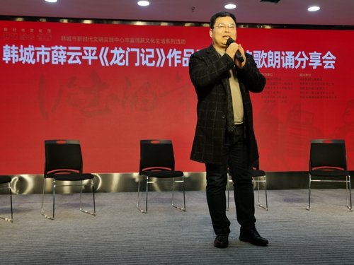 2023年12月3日,陕西文化界的知名人士,相继汇集在韩城市文化馆内五楼的多功能大厅与《韩城作家协会》、《韩城市诗词协会》的近百名业余文学写作爱好者相聚一堂,参加陕西残疾人作家协会主席、韩城业余作家薛云平先生《龙门记》作品研讨暨诗歌朗诵分享会。