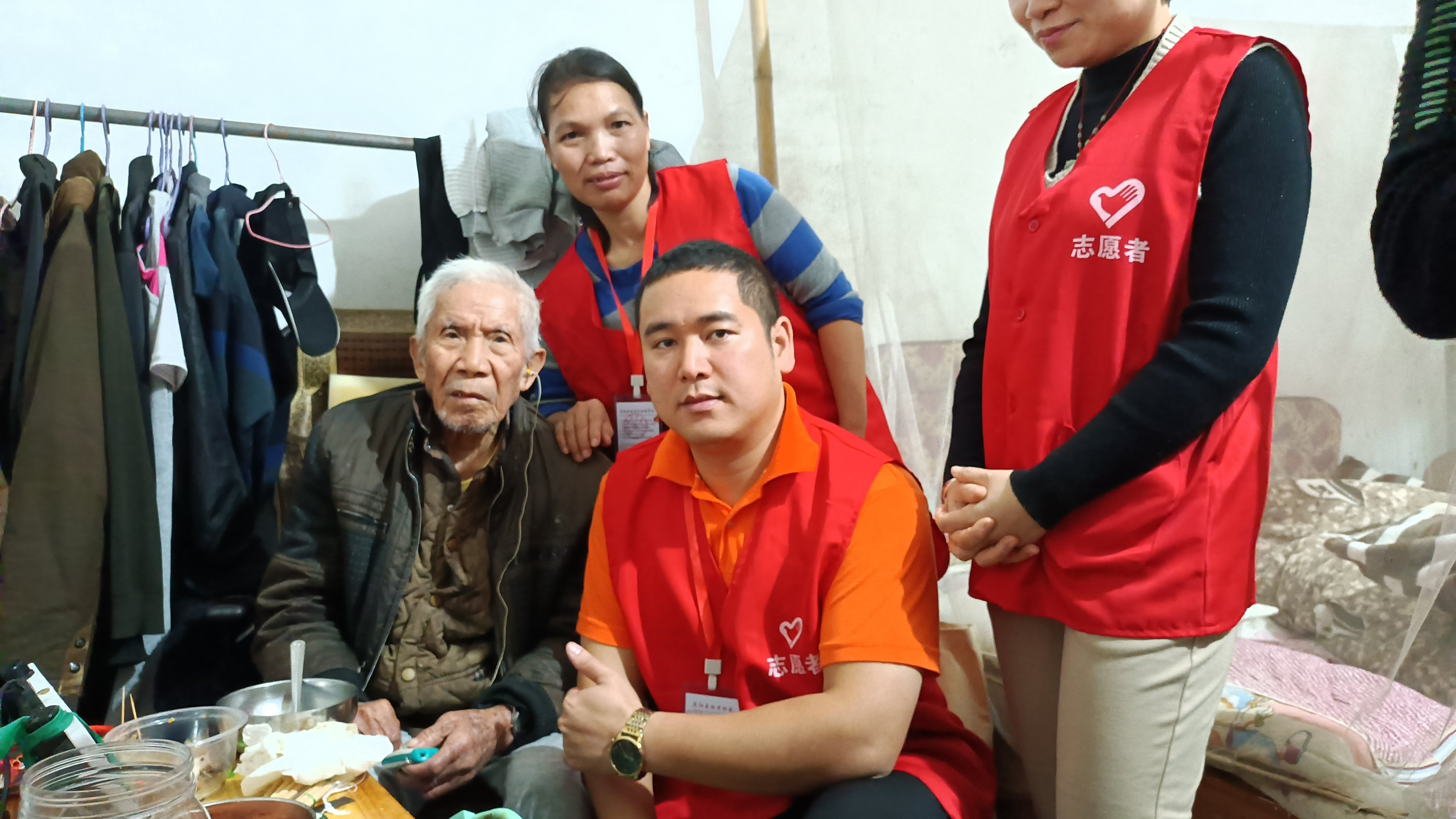 卓加福(老人的儿子)说:感谢宾阳县助老协会的志愿者来看望我爸爸:卓服明,他能吃,能走,就是听力有点差,希望有更多爱心人士加入宾阳县助老协会关爱高龄老人,传递正能量。