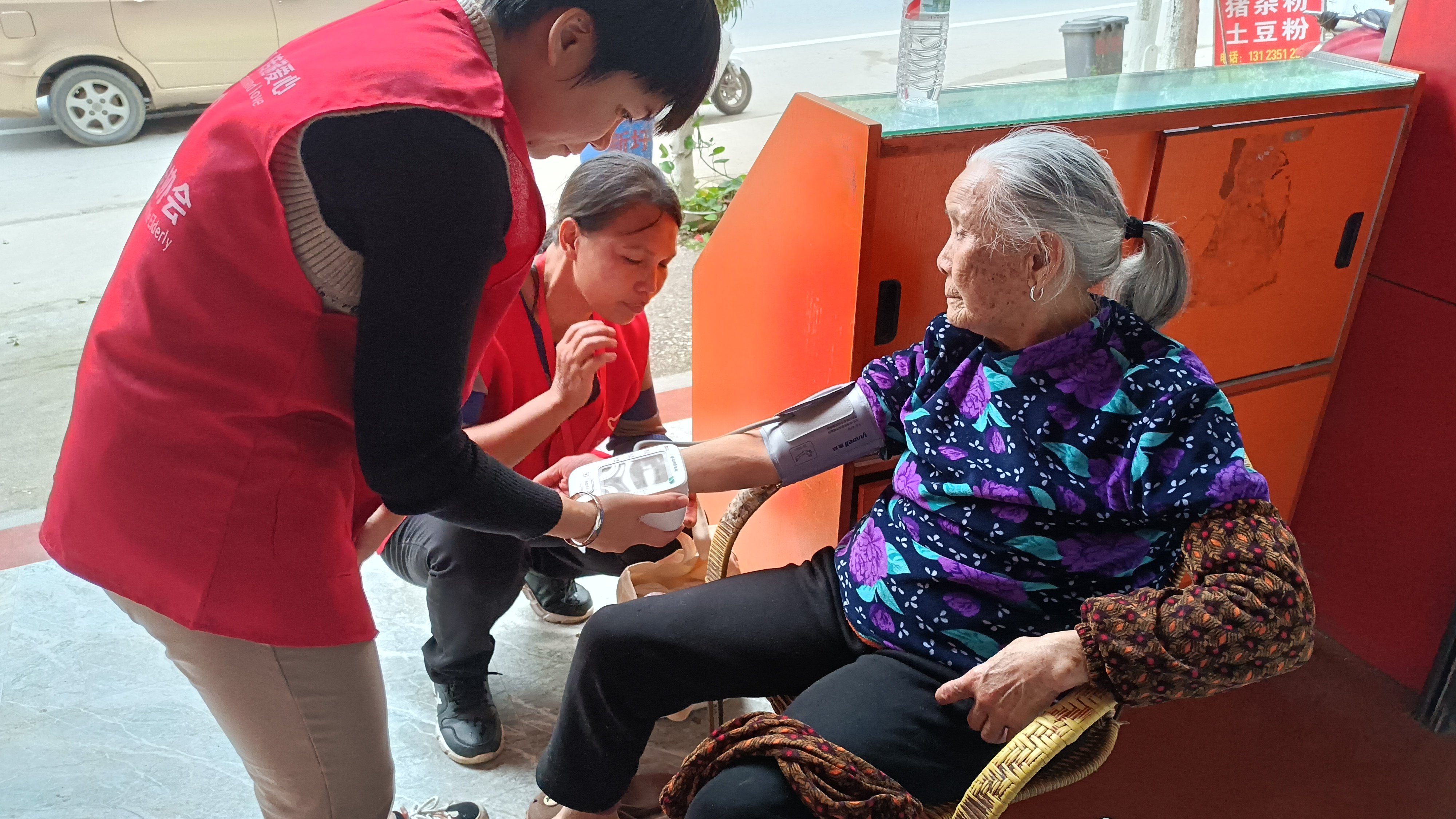 新圩镇看望:91岁高龄老人:梁秀金(老奶奶),现场量血压,高压:122,低压:72,心跳:94。身体状况:眼睛能看见,耳朵能听见,生活能自理。