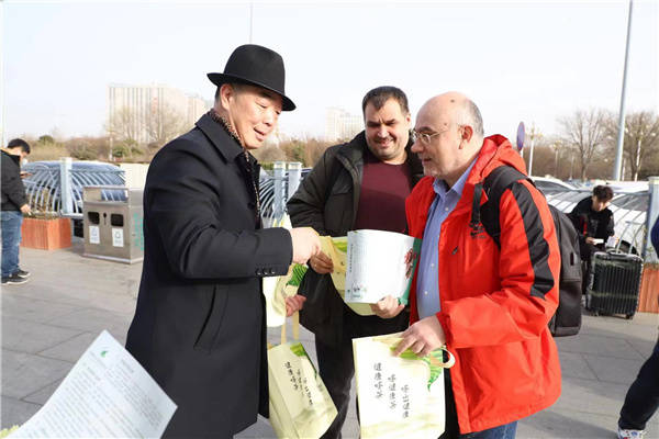 12月6日,沧州市茶文化促进会组织近20名会员到沧州高铁西站广场发放茶文化宣传资料和宣传品,解答旅客提出的疑惑,上面开头的一幕,正是活动的开始。 据杜雅良会长介绍,沧州市茶文化促进会刚刚从浙江金华领回茶文化“五进”工作优秀组织奖。此奖项由中国国际茶文化研究会颁发,全国仅有11个单位获得。今天部分会员为迎接此奖的到来,提前来到高铁广场开展宣讲活动。主要目的就是让茶文化的宣传无死角、无遗漏,不间断实现大众化、平民化、接地气的目标。