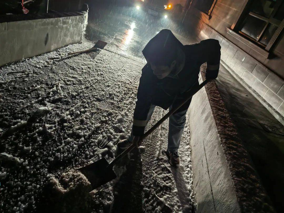 东北塘 12月18日晚,东北塘街道退役军人志愿服务队闻“雪”而动,连夜组织人员全力开展清雪除冰工作,用实际行动为群众出行保驾护航。 扫雪除冰