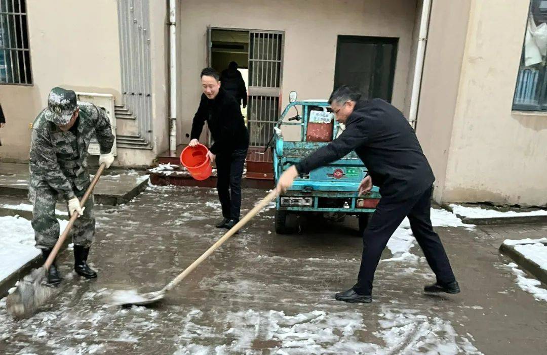 鹅湖 安镇街道退役军人志愿服务队清扫要道积雪、铲除背街积冰,扫出一条“暖心通道”,为居民出行提供便利。