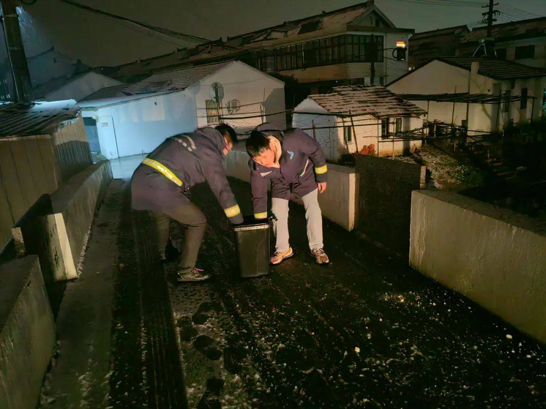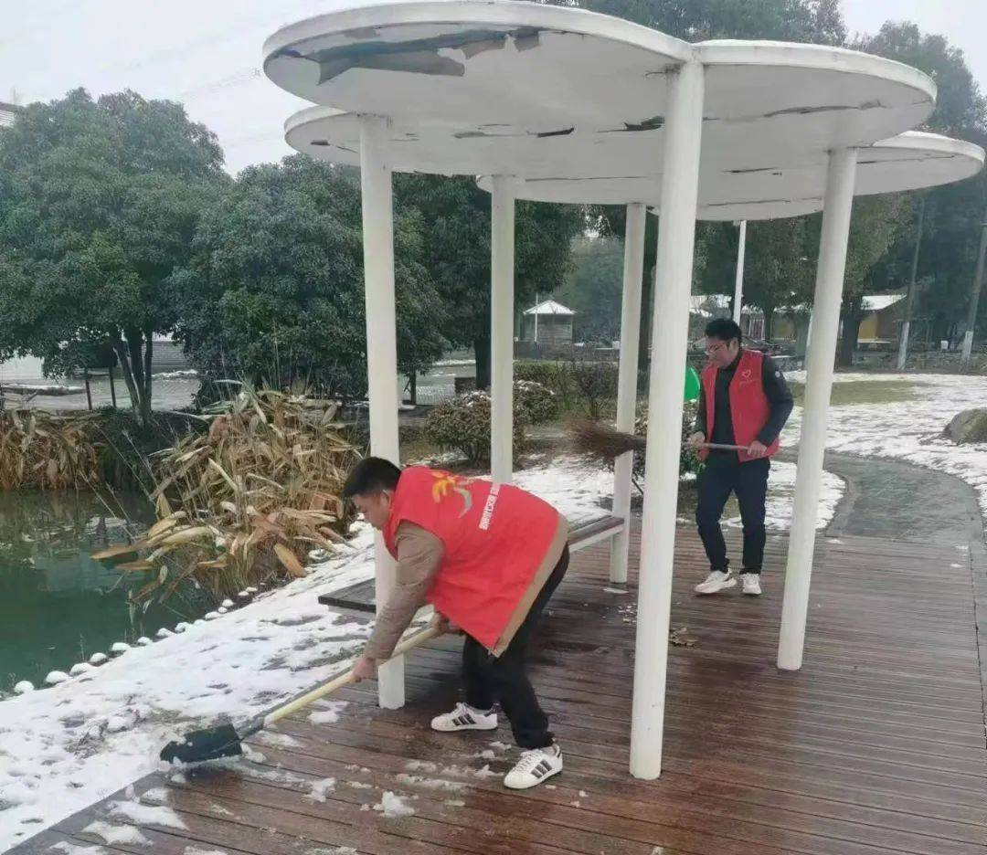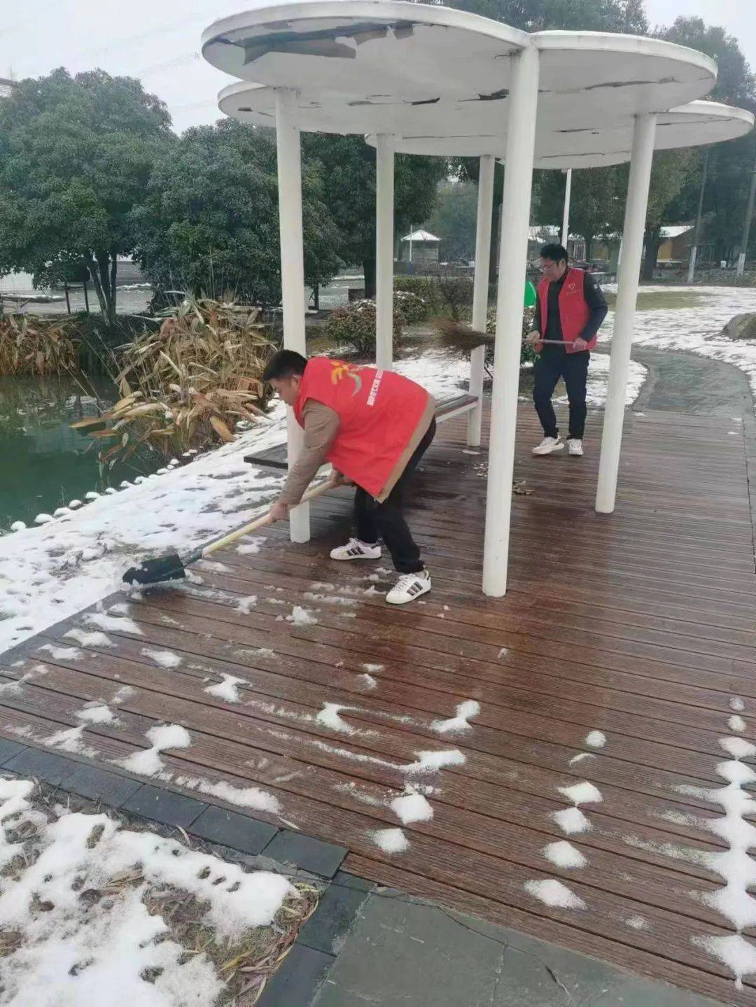 东亭街道退役军人服务站负责同志连夜部署、夜宿单位,第二天一早就组织10余名退役军人志愿者在柏庄社区、明泉社区等地铲雪清扫,保障市民出行安全。