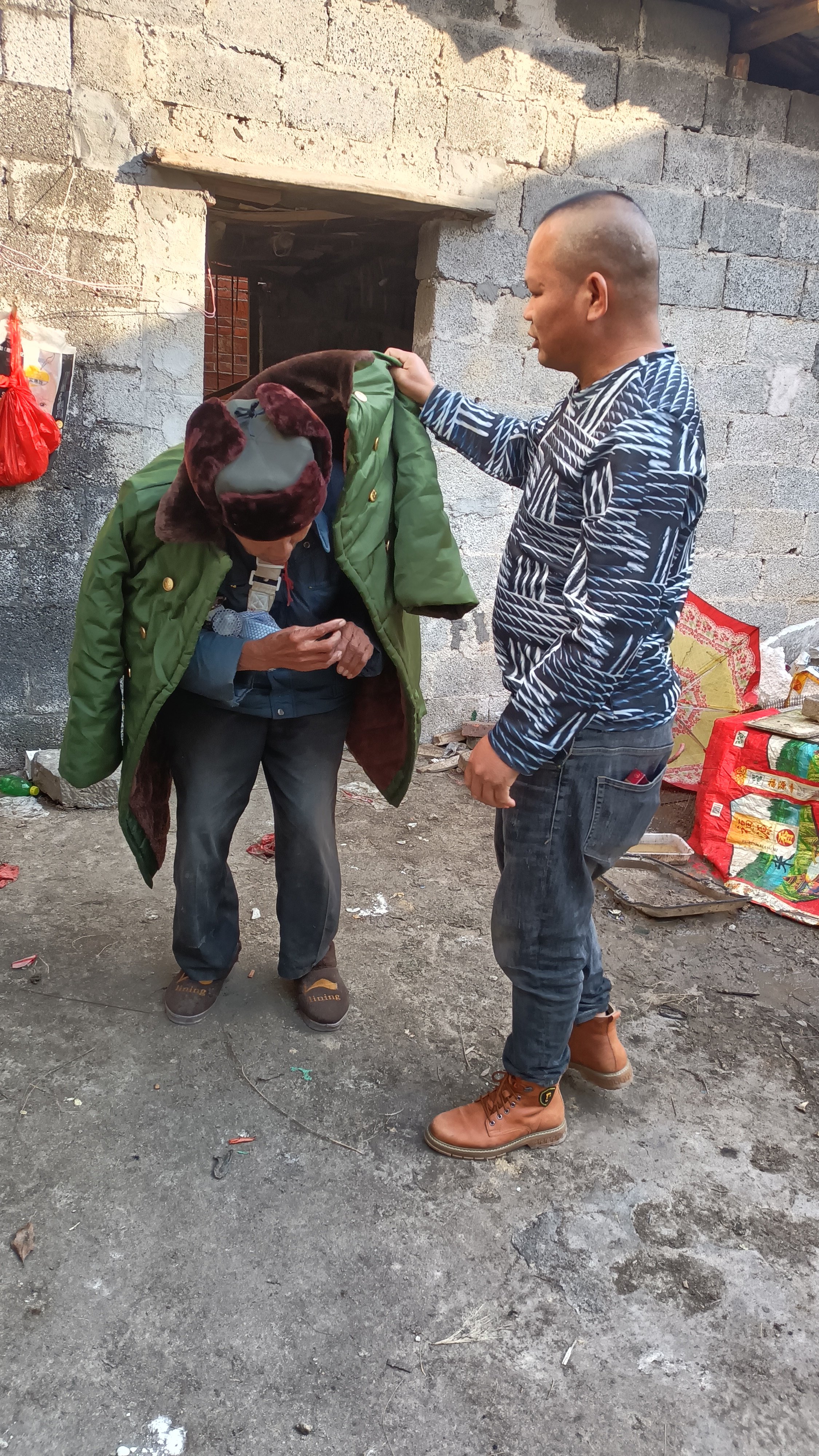 ![]() 2023年12月20日宾阳县助老协会在新桥镇大林村156号,看望高龄老人,孤寡老人,志愿者:吴勇安给孤寡老人买1件军大衣,买1顶帽子,买4斤猪肉,1袋大米,1托鸡蛋,1袋面条,1瓶花生油。志愿者:吴勇安,亲自给孤寡老人刮胡须,开车送老人回家,带老人去新桥镇吃美食,传承孝老爱亲中华美德,营造宾阳县尊老敬老助老的文明新风尚,乡村振兴,美丽宾阳,和谐宾阳,传播文明,传递爱心,传递正能量! ![]()