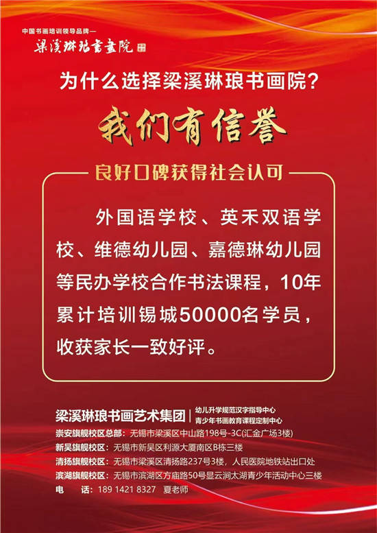崇安旗舰校区总部:无锡市梁溪区中山路198号-3C(汇金广场3楼) 经开旗舰校区:无锡市经开区方庙路50号显云涧太湖青少年活动中心三楼 新吴旗舰校区:无锡市新吴区利源大厦南区B栋三楼 清扬旗舰校区:无锡市梁溪区清扬路237号3楼(人民医院地铁站5号出口) 琳琅书斋(经开店):方庙路50号太湖青少年活动中心一楼