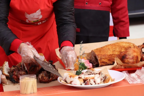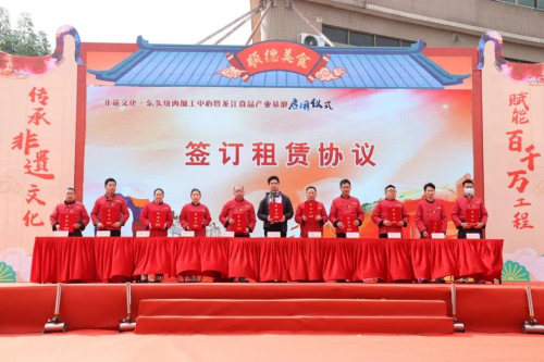 商户现场切龙江东头烧肉 活动上,佛山市顺德区龙江镇显江文化传播有限公司、龙江镇饮食协会、佛山市东头东联食品管理有限公司签订了三方合作协议;佛山市东头东联食品管理有限公司与10家进驻商户代表签订了租赁协议、与5个商协会代表签订了战略合作协议,共同推动东头烧肉的品质提升和品牌推广。