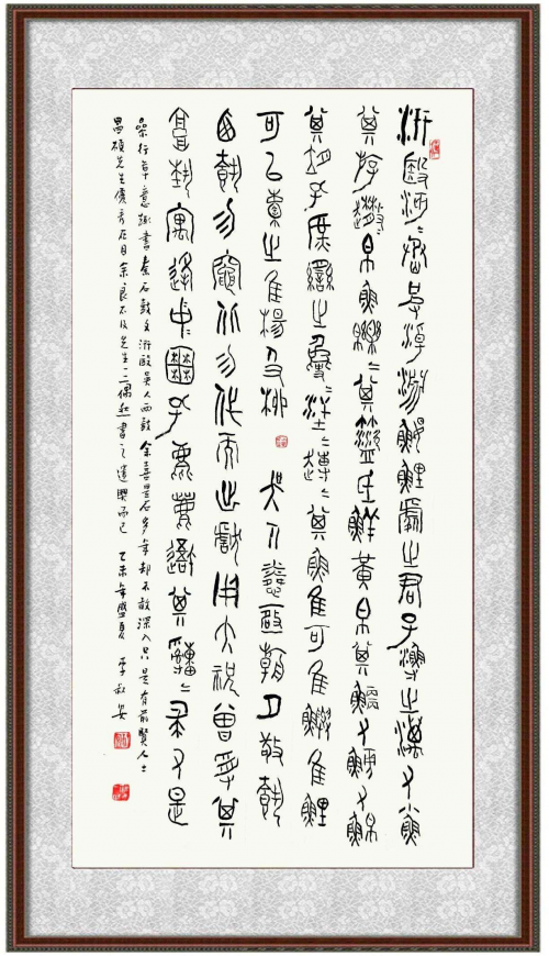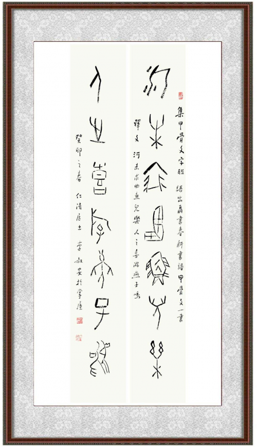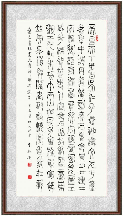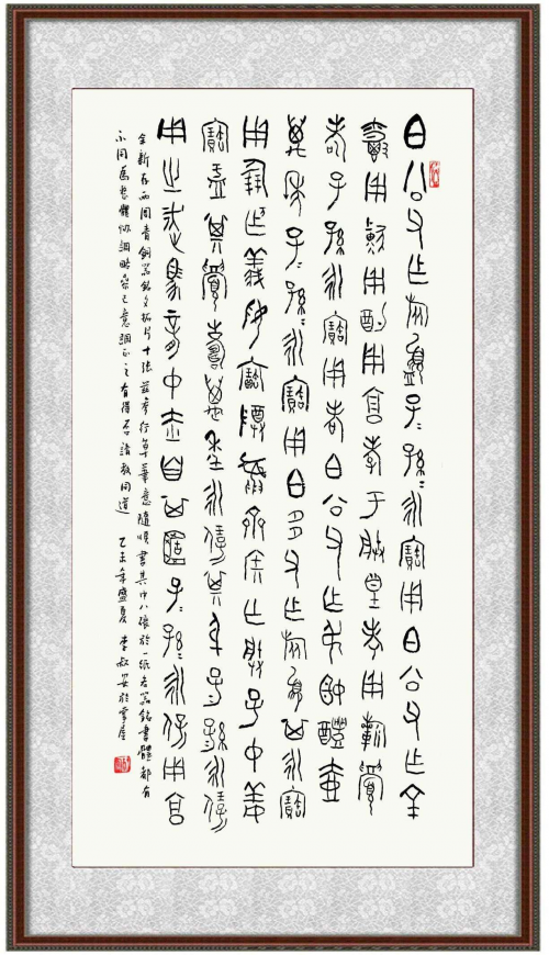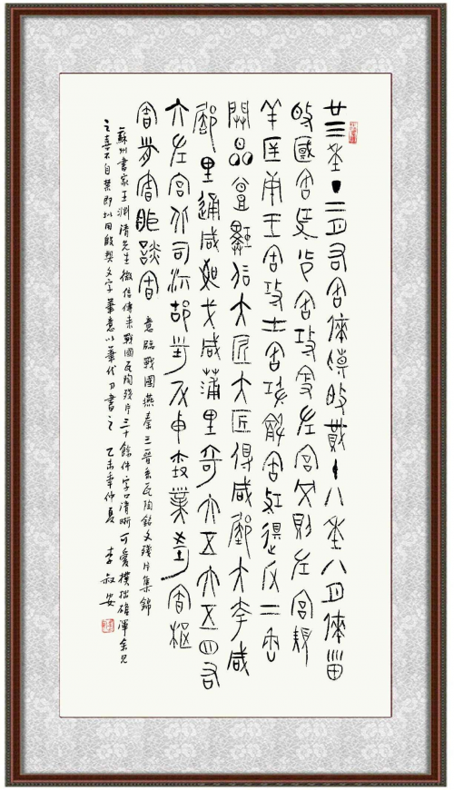 十二体之一甲骨文 110CMX50CM 古雅经典 简静天成——品读李叔安书法艺术 文/彭庆阳 凡尘俗世,何以难?做人难,品人亦难。我们虽无法完全洞悉一个人的内心世界,但跟着感觉走,凭借着冥冥之中的缘份,同样可以走进彼此的世界。我与叔安君未曾谋面,却神交已久,惺惺相惜。 叔安君是勤奋的,虽已过花甲之年,每日仍旧笔耕不辍,他的书法都是有感而发、率性命笔,没有把书法仅当作一种技艺,而是将生命、学养与书法艺术融为一体,勤思书法与文气的渊源,自得其乐,接通了古代文人书家的血脉。 叔安君是低调的,他的书作先后受到欧阳中石、王学仲、李铎等书坛巨擎的褒扬鼓励,他的作品集被多家出版社争相出版发行。然而这些于他而言,真乃身外之物,还自谦为“书法爱好者”而已,与那些争夺“大师”之冠者,乃令人感慨万分。 文如其人,字亦如此。品读叔安君书作,他那温文儒雅的气质、饱学之士的风骨、睿智博通的修为、清心寡欲的心态,这些无形的空灵都凝于书法线条之上,涵蕴在字里行间,这是他丰富学养的使然。他的作品没有那种剑弩拔张、咄咄逼人的阵势,也没那种俗不可耐或曲高和寡的特质,却有着中华传统文化的中和之美:含蓄、典雅、静穆,突出了审美过程中主体与客体、人与自然、感性与理性及各种形式美因素的协调统一,给人以愉悦、轻松的审美快感。 叔安君自幼习书,受吴门名家程质清、宋季丁等影响,走的是一条恪守传统正脉的路子。初由汉隶、魏碑入手,继而攻篆书、草书。他临研《十七帖》,着意冲和典雅、不激不厉的风格;研习《泰山石刻》,吸纳严谨浑厚、平稳端宁的美质。他浸淫于传世碑帖,膜拜历代大师,从实临到意会,朝夕与古人为伍,和经典对话。其作品具有传统之功力,注重个性风格之塑造,在追求晋韵、唐法、宋意、明态、清趣等书法艺术真谛上潜心求索,“唯恐笔下无古人”。他把碑书的厚重、肃穆、奇崛、朴实,帖书的清逸、灵动、圆融等特点融合在一起,营造一个古雅经典、近乎完美的艺术空间,营造出相对完整、饱满的自我艺术语言与视觉图式。今天的叔安君,已不把书法创作当作重复古典的躯壳或符号,已把“我写书法”上升到“书法写我”,倾注一种对艺术的终极关怀,贯注一种生命力的表现,是把握书法本质的再创造。 叔安君于书法五体皆擅,尤精于隶书和魏碑,无论于哪种书体创作,他都能以古典精神和现代意识的有机融合,自觉汇入造型艺术的诸多形式,辩证地诠释传统与创新的关系。他的学识、修为、气质通过书法的线条来表情达意,给人们留下自我情感宣泄的轨迹。他的书法作品,所呈现出来的是笔法精到,娴熟凝练;线性古雅灵秀,清新洒脱;结体平中寄奇,拙而能肆;气息豪迈超逸,简静天成。以坦荡的君子情怀、智慧的笔触倾泻着他洗尽风俗、清净的情感世界。“入乎古人而出乎古人,会古通今而求书法新变”,这是他书法所彰显出来的,也是他在漫漫书法道路上孜孜以求的。 《心经》有云:“心无挂碍,无挂碍故,无有恐怖,远离颠倒梦想,究竟涅槃。”放眼当今书坛,大多为名利所累,心系孔方,整日梦想连连,何以能悟得正道?叔安君是一个有着大智慧的人,他把学习书法当作是在研究、弘扬中国传统文化精神来对待;他把学习书法当作一个高雅的志趣,用以陶冶性情。正因为如此,在这个喧哗吞没了虚静,物欲淹没了精神的时代里,面对这种浮躁凌厉的时风,他并不随风俯仰,孜孜于书法艺术的探求,致力于时间利用的充分化、成果取得的最大化,以书法艺术来观照社会、观照人生。 叔安君“以书启智、以书怡情、以书砺志、以书育德、以书健体”,或本无意为书家,只是把书法作为一种涵养性情,寻觅精神寄托的一门功课而迷恋其中,知途忘返,故其书法有着“思无邪”的纯净、“止乎礼仪”的节制、“天人合一”的自然,他也正行走在通往书法至高境界的路上。 2015年6月3日夜于德合堂 |