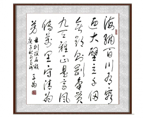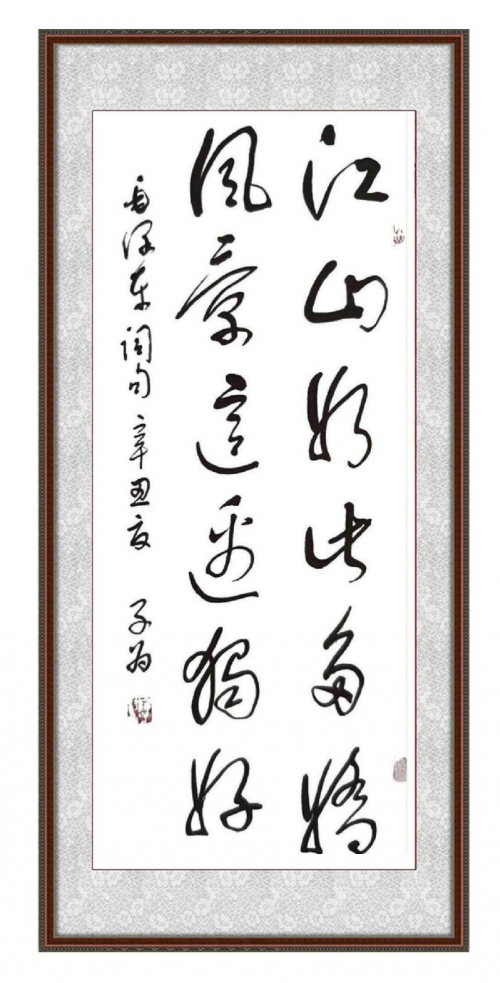 沈鹏先生对其作品评语:“子为作品,直取自然万象入书,飘逸而沉稳.刚健而温顺,灵动而厚重,大开大合不失肃穆儒雅”。 |
