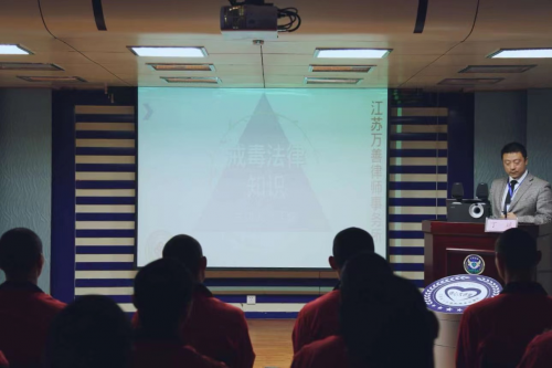 2019年4月2日,丁斌等律师赶赴江苏句东强制戒毒所开展法律帮扶活动。所内近百名戒毒人员接受现场法律咨询服务、听取法律知识讲座。在法律讲堂现场,丁斌用课件系统介绍了毒品概念、毒品管制、法律责任、成功戒毒案例、如何防复吸等内容,尤其从社区戒毒、社区康复工作机制、业务流程、后续照管等方面知识。对刚出台的《江苏省社区戒毒社区康复标准(实行)》进行了解读。