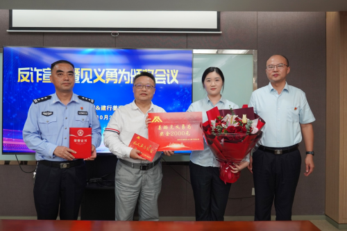 近日,泰州市公安局姜堰分局、姜堰区见义勇为基金会一行7人来到泰州姜堰支行,为合规标兵姜璐颁发见义勇为荣誉证书及专项奖励,对网点成功拦截网络诈骗、保护市民财产表示感谢。前期姜璐不仅协助警方现场抓获嫌疑人,扣押30万元赃款,还成功为受害者挽回150万元巨额财产损失。 颁奖仪式上,姜堰区公安局相关负责人对泰州分行姜堰支行反诈工作给予高度认可,并对进一步加强全民反诈工作提出指导意见,泰州姜堰支行负责人表示,“防范堵截电信诈骗、守好市民的钱袋子是建行每一名员工的应有之责,姜堰支行将常抓不懈,持续做好反诈宣传工作,预防风险事件发生,确保每位客户的资金安全。”