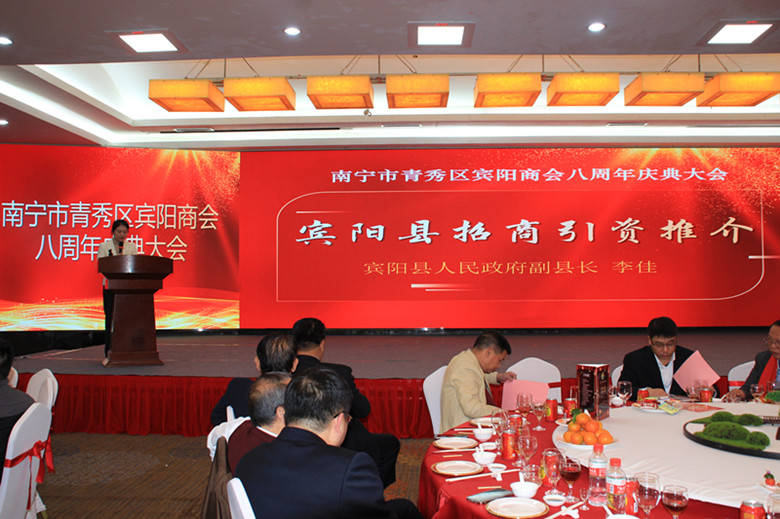 12月28日,在南宁沃顿国际大酒店,一场盛大的庆典活动热烈举行,这是南宁市青秀区宾阳商会八周年的纪念日。广西自治区老领导、南宁市、青秀区有关部门领导、青秀区宾阳商会、兄弟商会等300多人齐聚一堂,共同庆祝这个特殊的日子。