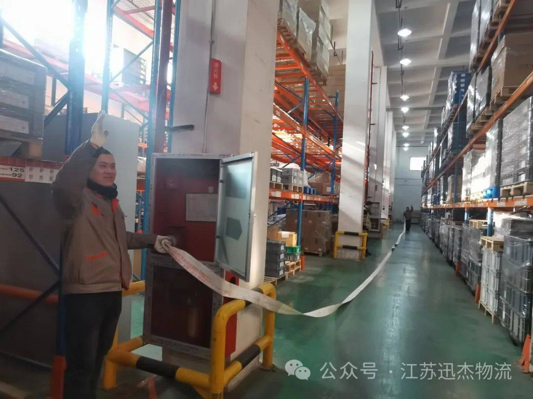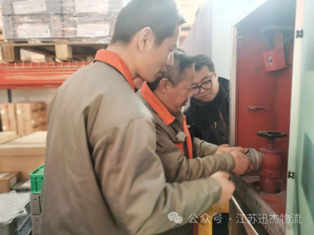江苏迅杰物流供应链事业部总监夏总主持本次会议,他强调,各项目组以本次培训为契机,时刻紧绷消防“安全弦”,认真履行安全生产主体责任,加强安全隐患排查,积极开展多样化的安全知识宣传工作。 消防应急演练现场 消防实操演练